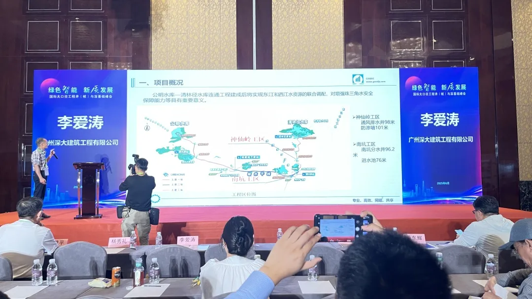 深大建筑基础执行董事、总经理李爱涛先生则在《超深、巨厚(硬岩)、斜岩(溶洞)地下连续墙施工案例交流》中,从实战角度剖析了复杂地质条件下的施工挑战。他以大湾区多个标志性项目为例,详细阐述了金泰双轮铣在应对硬岩、斜岩及溶洞等复杂工况时的技术优势,并分享了深大建筑基础与金泰团队协同攻关、突破技术瓶颈的合作经验。